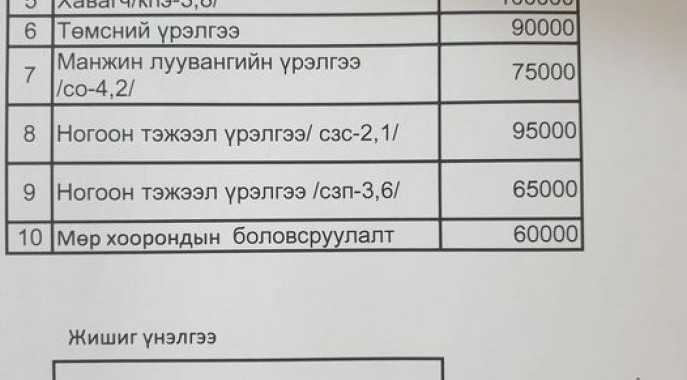 ХАВРЫН ТАРИАЛАЛТЫН ЖИШИГ ҮНЭ ГАРЛАА