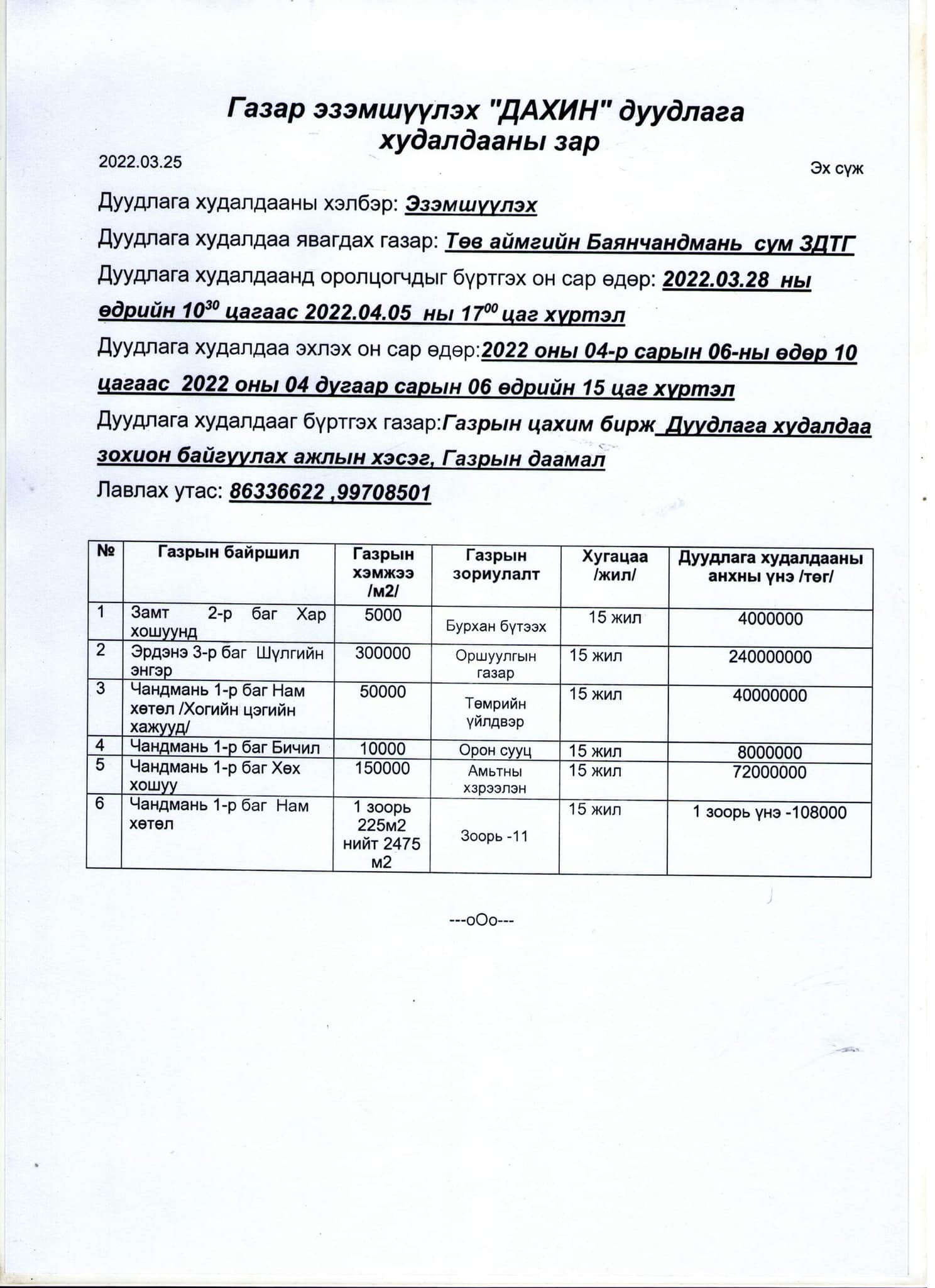 ГАЗРЫН ДУУДЛАГА ХУДАЛДААНЫ ЗАР