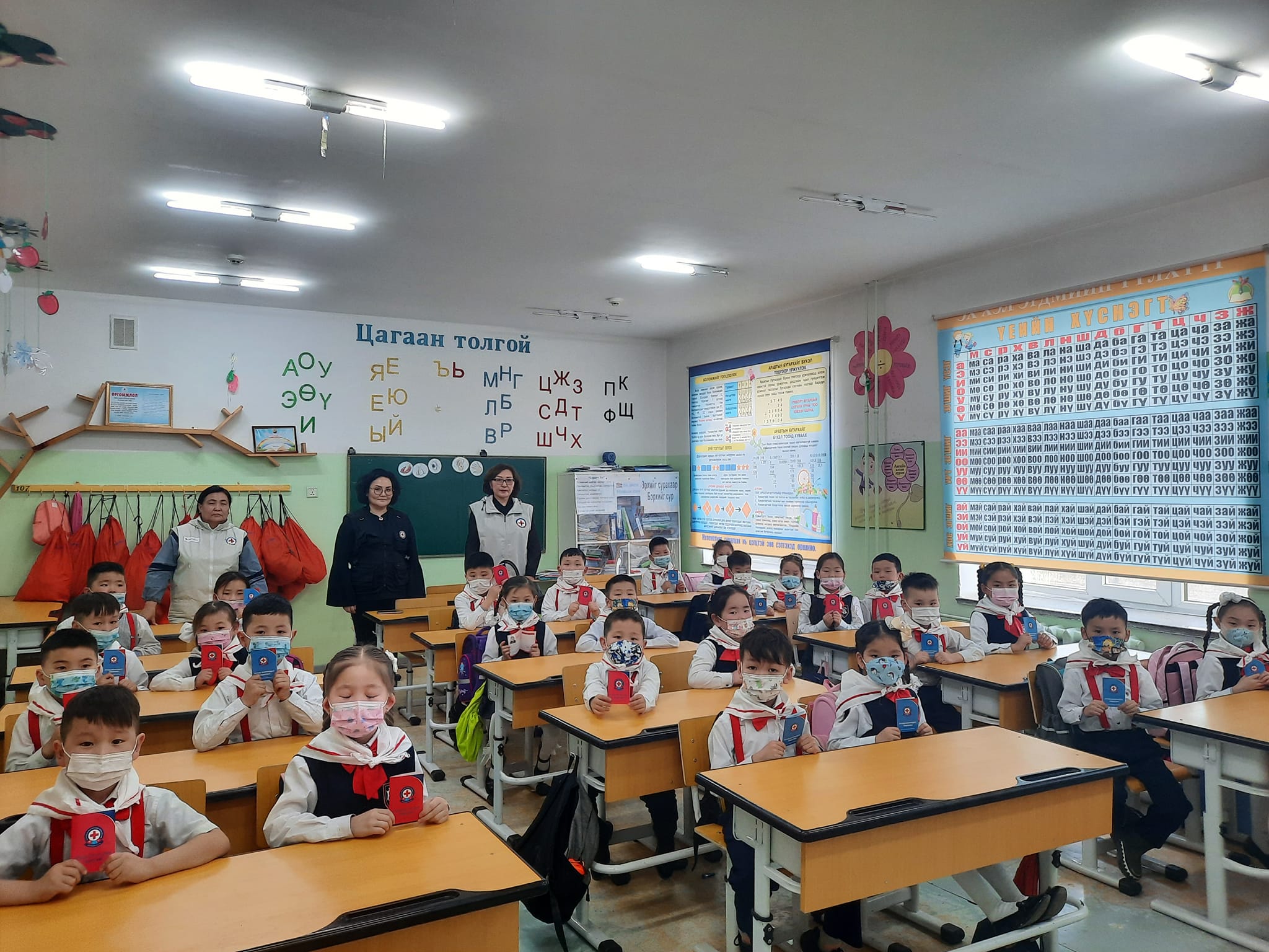 Монголын улаан загалмайн нийгэмлэгийн Хүүхэд залуучуудын хөдөлгөөний гишүүн болж, хайр энэрлийг эрхэмлэн, сайн дураараа бусдын жаргал зовлонг хуваалцаж, Монгол орныхоо хөгжил, хүн төрөлхтний сайн сайхны үйлсэд хүчин зүтгэхээ тангараглаж 1а ангийн хамт олон нэгдлээ.