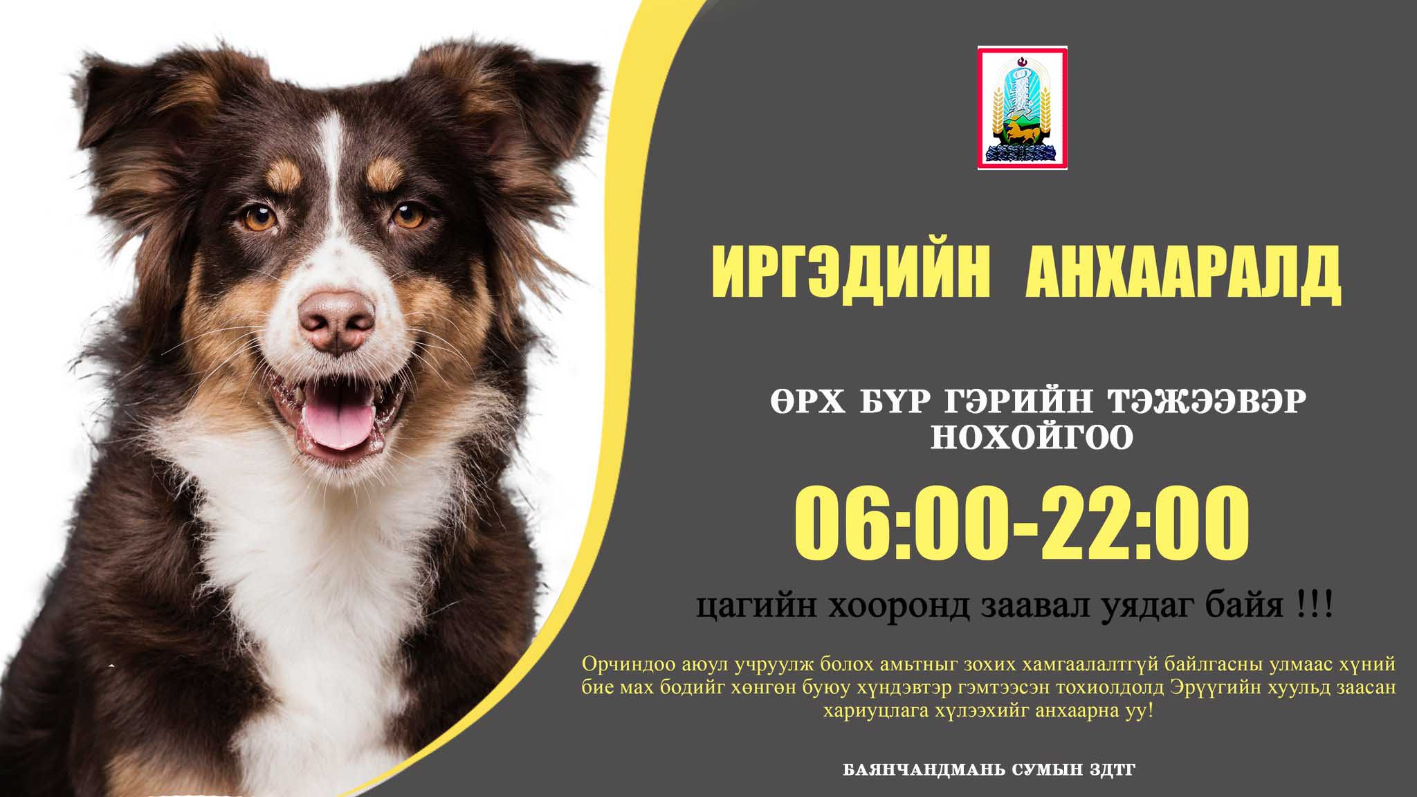 ӨРХ БҮР ГЭРИЙН ТЭЖЭЭВЭР НОХОЙГОО 06:00-22:00 ЦАГИЙН ХООРОНД ЗААВАЛ УЯДАГ БАЙЯ!!!!!!